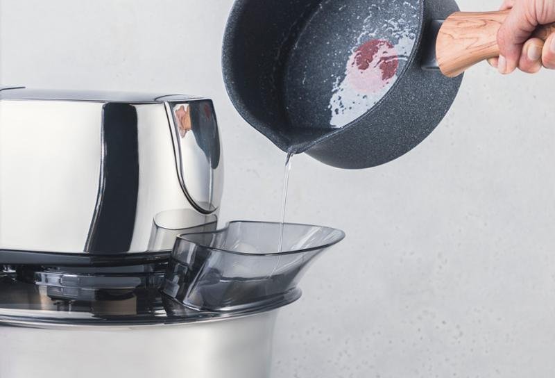 Amikor a keverék eléri a 118 fokot, állítsa le a főzést. Nyomja le a „Start” gombot, és lassan öntse a keveréket a gép táljába a felvert tojásfehérjére.